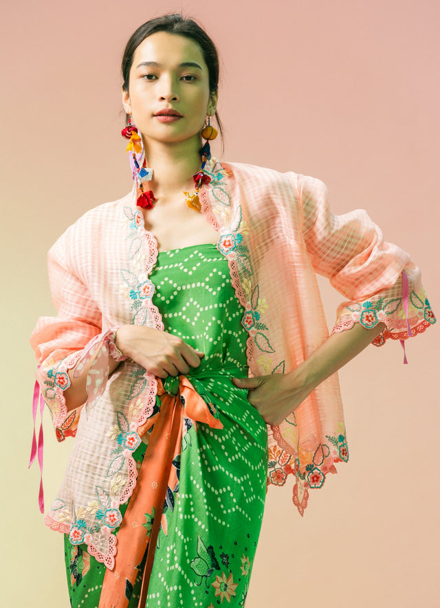 The collection includes camisoles, padma shirts, kebayas, pants, dresses, boxy tops, bandanas, outerwear, and shirts. Every piece carries a shade of pink that speaks of affection, craftsmanship, and the quiet stories of the earth woven into cloth.